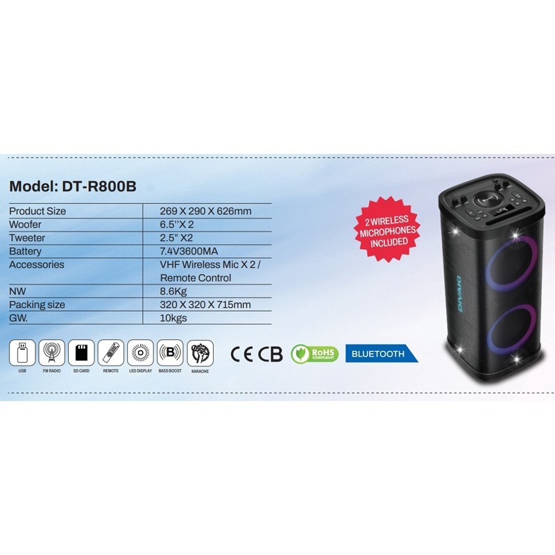 اسپیکر شارژی دیواکی مدل DT-R800B