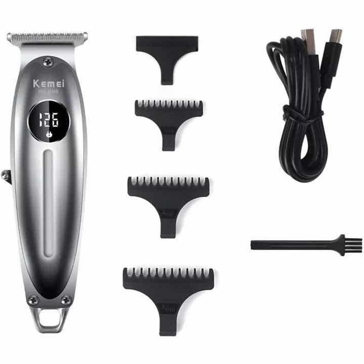 🧰 لوازم همراه: این دستگاه معمولاً با یک ست کامل لوازم جانبی ارائه میشود که شامل ۳ عدد شانه راهنما (برای تنظیم طول مو)، کابل شارژ USB، برس تمیزکننده، روغن مخصوص تیغهها و درپوش محافظ است.