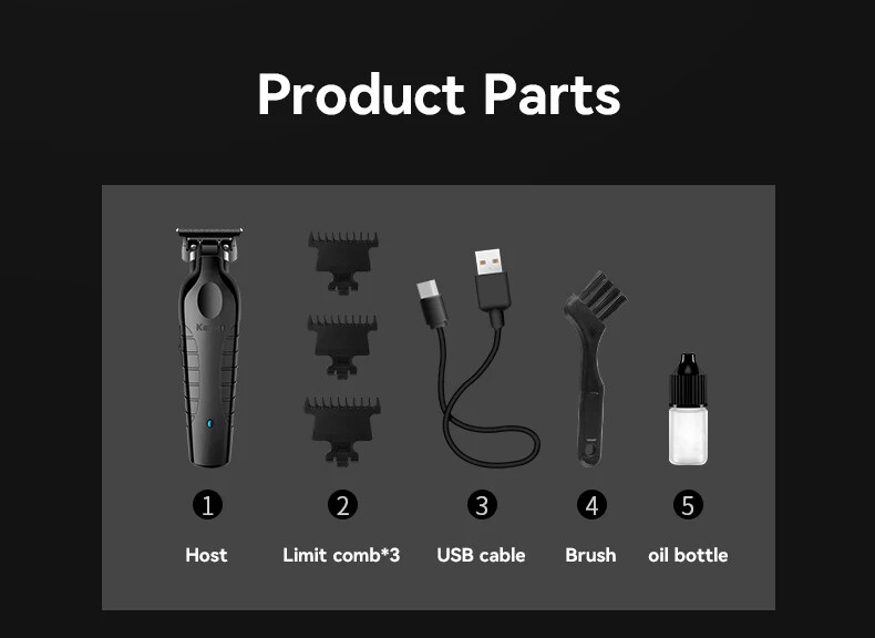• کیت کامل همراه: این محصول با سه شانه محدودکننده (۱، ۲ و ۳ میلی‌متری)، برس تمیزکاری و کابل USB ارائه می‌شود تا نیازهای مختلف طول مو را پوشش دهد.